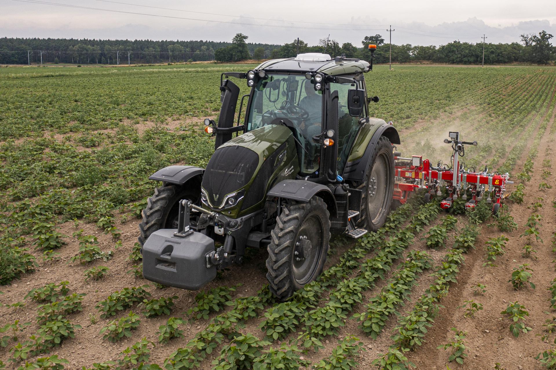 Valtra pracowała z 12-rzędowym pielnikiem Einböck Chopstar Prime z 6-metrową ramą, przystosowaną do rozstawu rzędów 45 cm, w jakim wysiana była soja. Każda z sekcji wyposażona jest w indywidualne koło kopiujące i zestaw elementów roboczych, których zadaniem jest oczyszczenie międzyrzędzi z chwastów bez naruszania uprawianych roślin. W tej konfiguracji masa pielnika przekraczała 2500 kg, co oznaczało, że ciągnik nie tylko musiał dysponować odpowiednim udźwigiem, ale i zapewnić stabilną pracę elementów roboczych, aby zachować najwyższą precyzję.