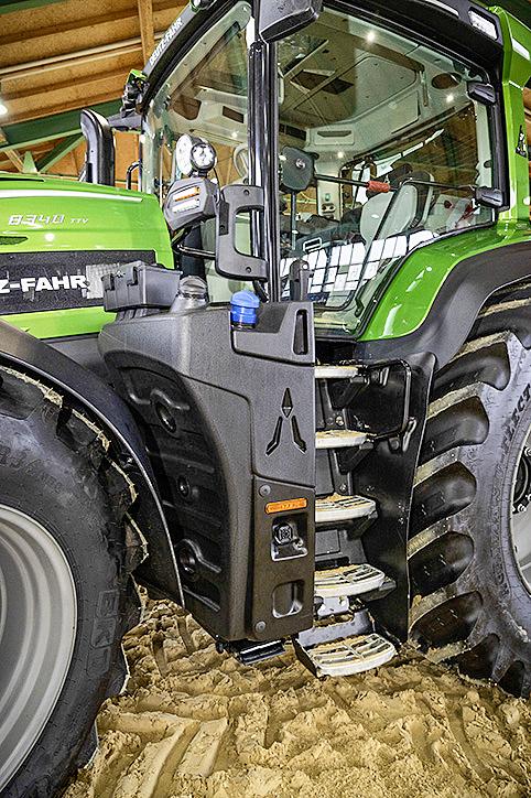 Nowo zaprojektowana i bardzo elegancka jest czterosłupkowa kabina ciągnika Deutz-Fahr serii 8. Na wysoko osadzone „siodło” tego konia pociągowego prowadzi 5 stromych i wąskich stopni. Ich liczba jest uzasadniona, bo do nowego ciągnika można założyć koła w rozmiarze 750/70 R44 o wysokości 2,15 m – z homologacją na koła bliźniacze z tyłu.